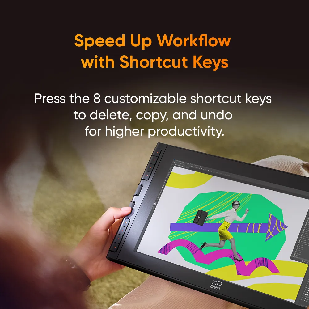 Eight customizable shortcut keys support side and front presses. The new button design saves space for a higher screen-to-body ratio. Press these keys to delete, copy, undo and perform more operations for higher productivity.