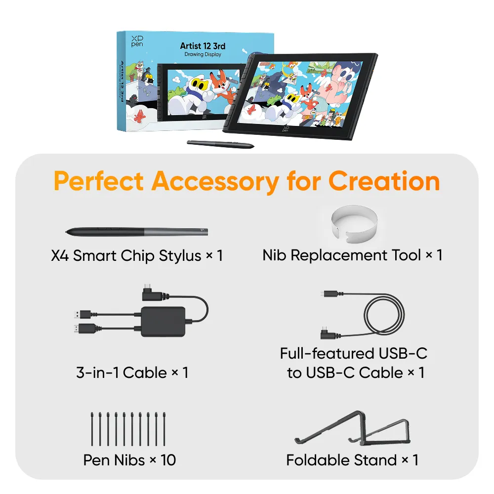 Artist 12 3rd redefines the portability of drawing displays. Weighing just 719g and featuring an 11.9-inch screen, it fits perfectly into your bag. Creating on the go has never been easier.